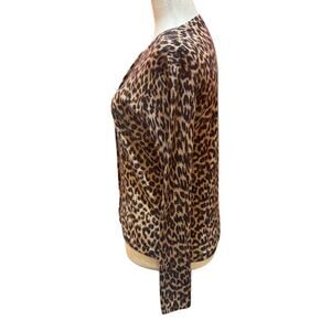 Women’s Size PM Petite Medium Lord & Taylor Leopard Print Extra Fine Merino Wool Long Sleeved Button Up Cardigan