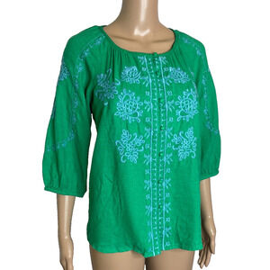 Women's PXS J.Jill Green Linen Blend Floral Embroidered Button Front Blouse NEW