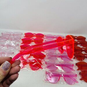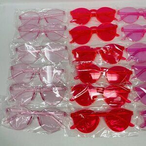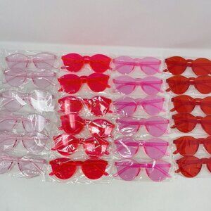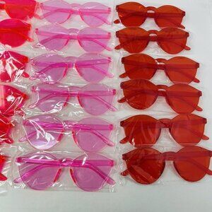 Womens Pack of 24 Round Rimless Colored Sheer Sunglasses for Parties Pink Red