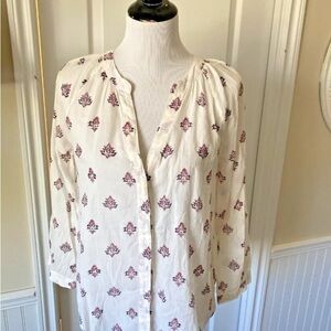 Womens Paige Size Medium Blouse Top Long Sleeve Sheer Boho Button Up White