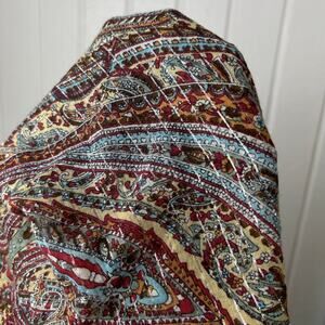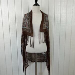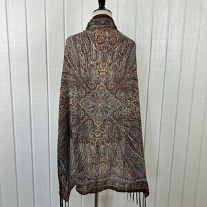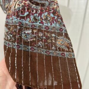 Womens Paisley Earthy Metallic Fringe Scarf Shawl Square Fairy Boho Hippie Brown