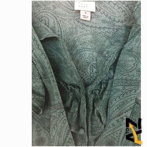 Women's Paisley Print Ruffle Long Sleeve Dramatic Blouse Size S
