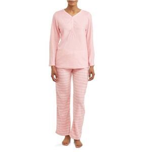Womens Pajama Set 2-Pc Loungewear Size L 12-14 Micro Fleece Plush Pink NWT