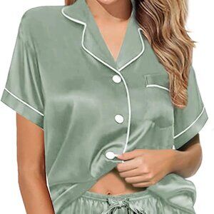 Occasions: This Womens plain and floral printed satin Pajamas set shorts silk pajama set Pjs set sleepwear Pj sets Loungewear easy to match for daily wear. Light weight easy to carry. Comfortable, suitable for wedding party and bridal, rest and sleep, slumber party, girls' day, bridal pajamas, indoor, living room, bedroom, hotel, workplace, travel, daily pajamas.