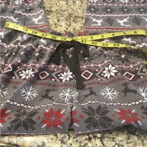 Preowned women’s Christmas sleep pants. Size M. They have a Christmas theme print, reindeer, snowflakes, and Christmas tree design. Gray, red and white. They have a drawstring waist. Good condition, no stains or tears. Please see pictures for measurements.