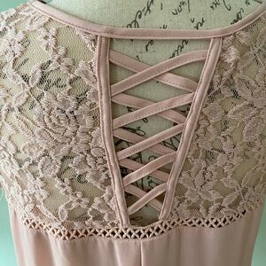 Women’s Pale Pink Shirt Dress with Lace Detail Size Large