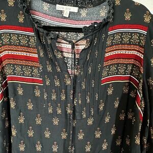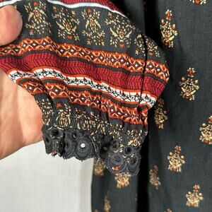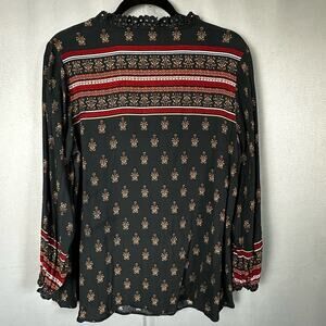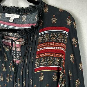 Women's Pale Sky Black Red Boho Peasant V Neck Tie Flowy Career Blouse Sz 1X