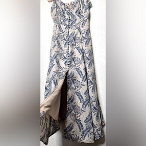 Womens Palm Print Midi Dress Medium Blue White Tropical Leaf Button Up Vacation