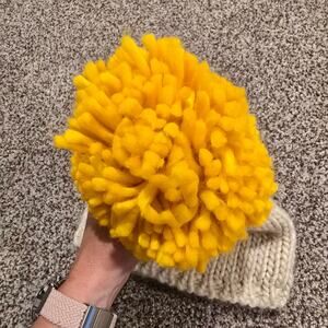 Excellent condition, women's Panache cream and yellow knit, stocking cap with a pom pom on top. This stocking cap is fleece lined.