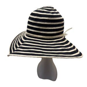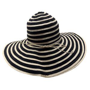 Women's Panama Jack Black & Beige Striped Wide Brim Sun Hat Coconut Shell