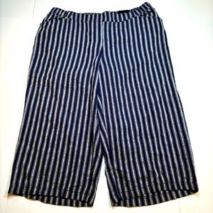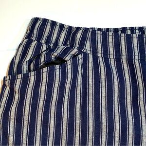 Women’s Pants 18 Linen Blend Cropped Striped Elastic Waist Lane Bryant Blue