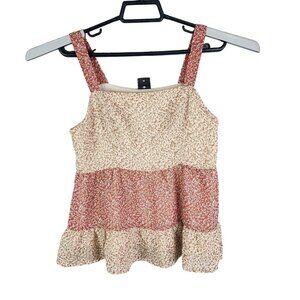 Women's Paper Crane Floral Print Sleeveless Tiered Blouse Top Size XS