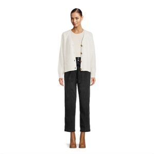 Material: 63% Cotton/33% Polyester/3% Other Fiber/1% Spandex • Care: Machine washable • Country of Origin: Imported • Size: Model is 5’10” and is wearing a size 4 • Fit: Straight, tapered leg • Rise and Inseam: Mid-rise; 29” inseam • Closure: Button fly closure • Pockets: 4 pockets hold essentials • Features: Belt loops; elasticized waistband; self-tie belt; seaming details