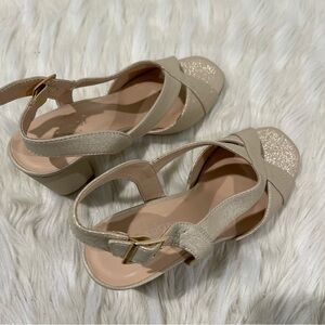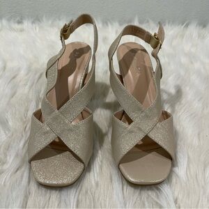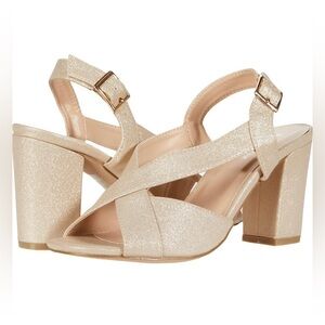 Hibiscus from Paradox London is a comfortable 3 inch block heel sandal made with a shimmer material and a synthetic sole.
