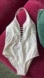 Stylish white halter one-piece swimsuit with a chic front cutout design. Perfect for beach days. Never worn.