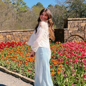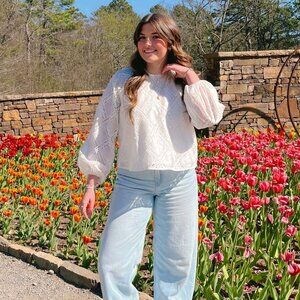 Elevate your everyday wardrobe with the Women's Parisian Lace Long Sleeve Top by Sofie The Label. This ethereal white blouse features delicate lace panels arranged in a unique geometric pattern, blending classic elegance with modern design. The lightweight fabric and relaxed fit make it a versatile piece for any occasion, from brunch to date night. The top's billowy long sleeves with elasticized cuffs add a touch of romantic charm, while the soft, semi-sheer fabric exudes femininity. Its timeless white hue pairs effortlessly with your favorite denim, trousers, or skirts, making it a staple for all seasons. Style it with the Le Paris Micro Suede Shorts for a chic, Parisian-inspired look. Details: Sofie The Label 60% polyester, 40% lyocell White Fully lined Fabric has a sheen Trapeze bodice Round neck Back neck button closure Balloon sleeves Lace inlay Parisian style Size & Fit: The Women's Parisian Lace Long Sleeve Top by Sofie The Label fits true to size. The most crucial measurement is the chest as the fabric does not stretch. The material has a slight structure to it which gives it a very expensive and elegant look. Its is fully lined and not itchy. The model is wearing size small. See photos for model specs. Refer to the measurements below and choose your perfect fit. XS - Chest: 36", Length: 20" S - Chest: 38", Length: 20.5" M - Chest: 40", Length: 21" L - Chest: 42", Length: 21.5"