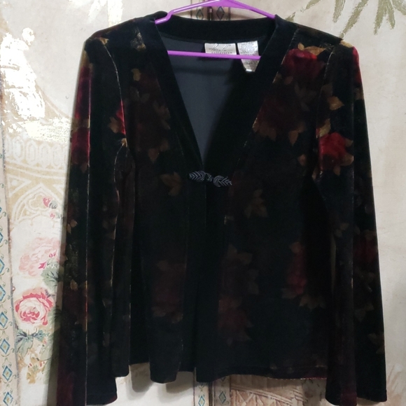 Another just in time for Holidays, wear over a black dress or dress pants . Has a beautiful Asian inspired knot closure. Worn once.
