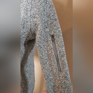 This warm Patagonia quarter-zip combines a sweater-knit aesthetic with the easy care of Better Sweater fleece. It comes in a slim fit. A zippered sleeve pocket keeps essentials handy.