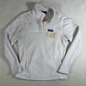 Women’s Patagonia Size Large Synchilla Cream and Tan Women's Sweater Button Snap