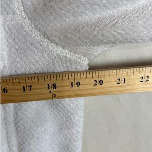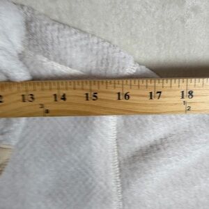 Cozy cream sweater with tan accents. Features a high collar and front pocket. Perfect for layering.
