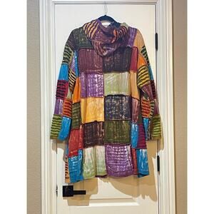 Women's Patchwork Colors BOHO Zip Hoodie 3/4 Length Plus Size