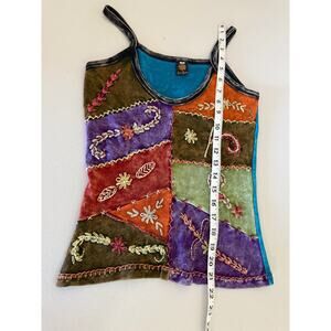 Women's Patchwork Hand-dyed Embroidered 100% Cotton Botanical Tank Top Shirt Med