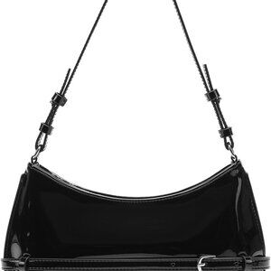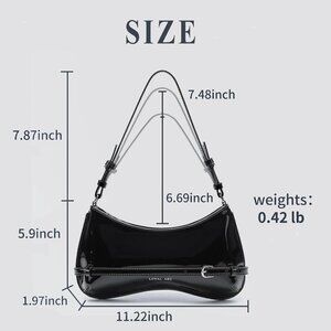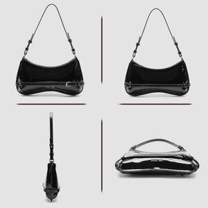 Features: Made from shiny patent leather with a sturdy zipper closure, this small shoulder purse is perfect for adding a pop of sophistication to any outfit. Includes an interior slip pocket for smaller essentials and a detachable leather strap plus an iron chain, so you can customize your look easily. Water-resistant and easy to clean—just wipe with a damp cloth!