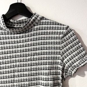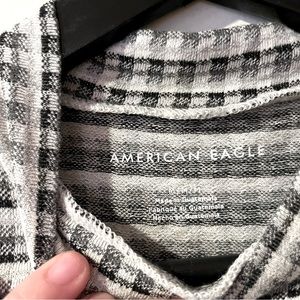 American Eagle black and white pattern tee. Stretchy material, slight mock neck and cropped-style