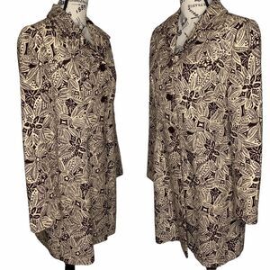 Stylish women's coat featuring an intricate pattern. Perfect for adding a touch of elegance to any outfit.