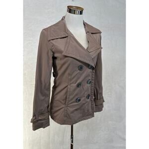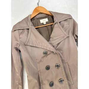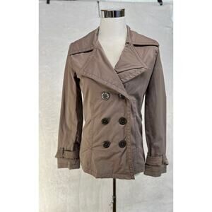 Womens Pea Coat Rain Jacket Merona Size XS Tan Brown Double Breasted Button Up