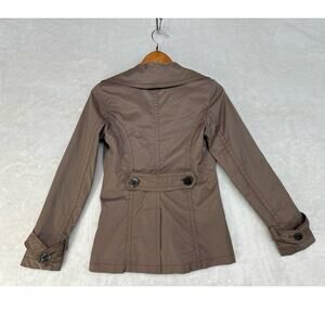 Womens Pea Coat Rain Jacket Merona Size XS Tan Brown Double Breasted Button Up - Machine Wash