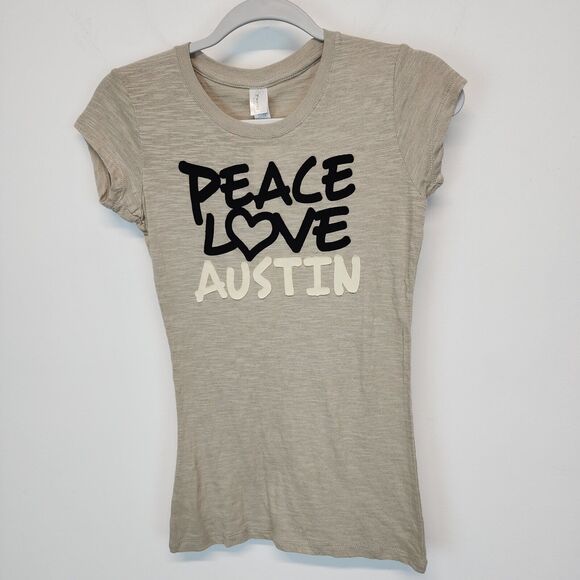 Womens Peace Love Austin T-Shirt Size M Beige Short Sleeve Crewneck Slub Knit