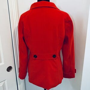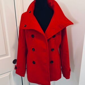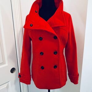 Like new H&M peacoat in a bright red. Poly-blend outer shell, poly lining inside. Excellent condition. Women's size 8.