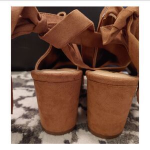 Women's Peep Toe Tie Back Shoe in size 8.5/9/EUC Excellent Used Condition/by JustFab/These Shoes are Cute and Sexy at the same Time!/You could Wear them Laced with a Bow in the Back or Tie Wrap them up your Ankle for a Sexier Look/Very Comfortable Shoe/Please See Photos for Further Description/Smoke Free Pet Free Home