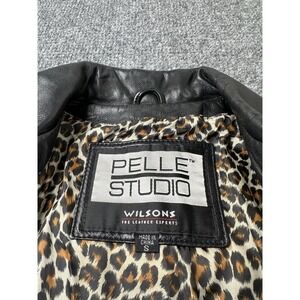 Womens Pelle Studio Wilsons Black Leather Zip Jacket Leopard Lined, Size S