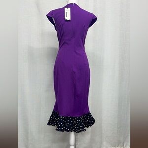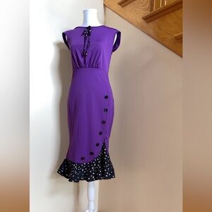 Women’s Pencil Dress Size Small Ball Fishtail Purple Black Button Ruffle Bottom