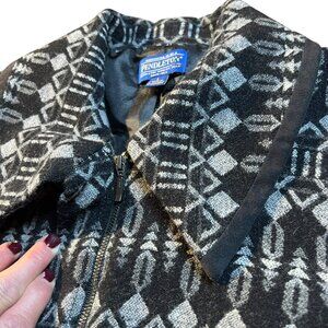 Women's Pendleton 100% Wool Jacquard Pattern Zipper Jacket Coat Blazer - Large