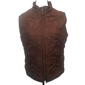 Women’s Pendleton BROWN Paisley Quilted Full Zip Vest Pockets Sz Large
