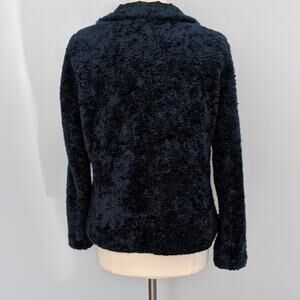 Women's Pendleton Fuzzy Zip Navy Plaid Fleece Jacket Medium Pockets Fall