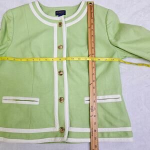 Womens Pendleton Mint Green Gold Button Front Blazer Jacket Cotton Size 14