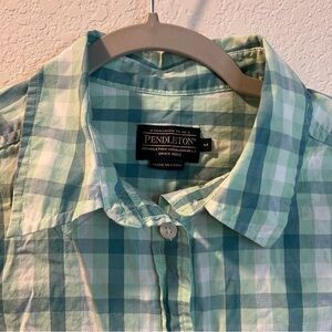 Women’s Pendleton green plaid quarter sleeve button up blouse size medium M
