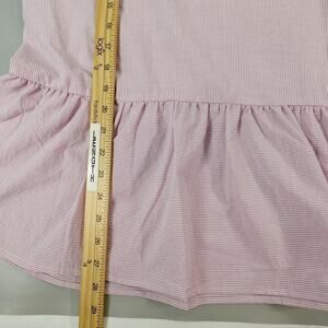 Womens Peplum Top Medium Pink Striped Ruffled Embroidered Cottagecore Modest