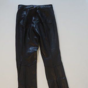 Womens Perellel Black Flat Front Leather Pants 6 *