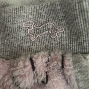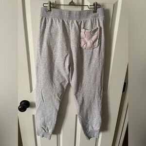 Women's gray joggers with pink fleece bunny print on the front. Perfect for spring & Easter! Back pocket has bunny print on it. Size small. Excellent like new condition from a smoke free/pet friendly home.