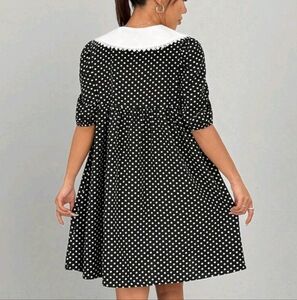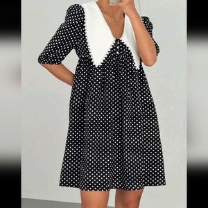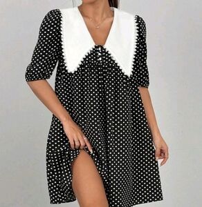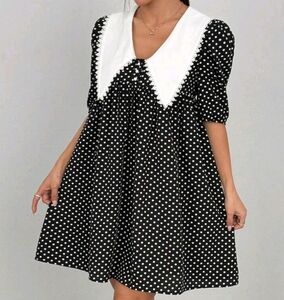 Women's Peter Pan Collar Patchwork Lace Polka Dot Print Mini Dress