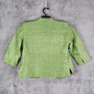 Womens Petite Coldwater Creek Green Embroidered Silk Jacket Open Front Size PS