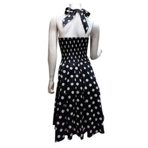 Featuring handmade halter dress with padded chest and big polka dot all over print