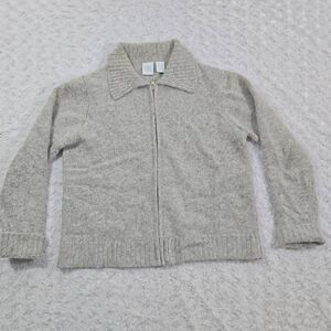 Soft Angora Rabbit Hair Lambswool Full Zip Collared Sweater Grey Womens Petite Medium