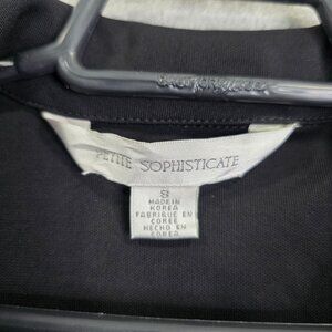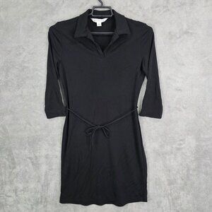 Womens Petite Sophisticate Black Collared Dress 3/4 Sleeve Belted Rayon Blend S