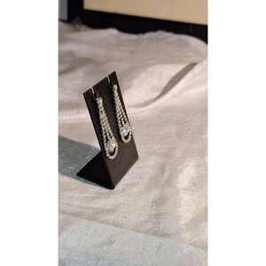 This is a beautiful pair of post back rhinestone dangle earrings. These would go well with your ball gown for an evening gala or a dinner date. They are in very nice condition and have lots of sparkle. They are 2" long.